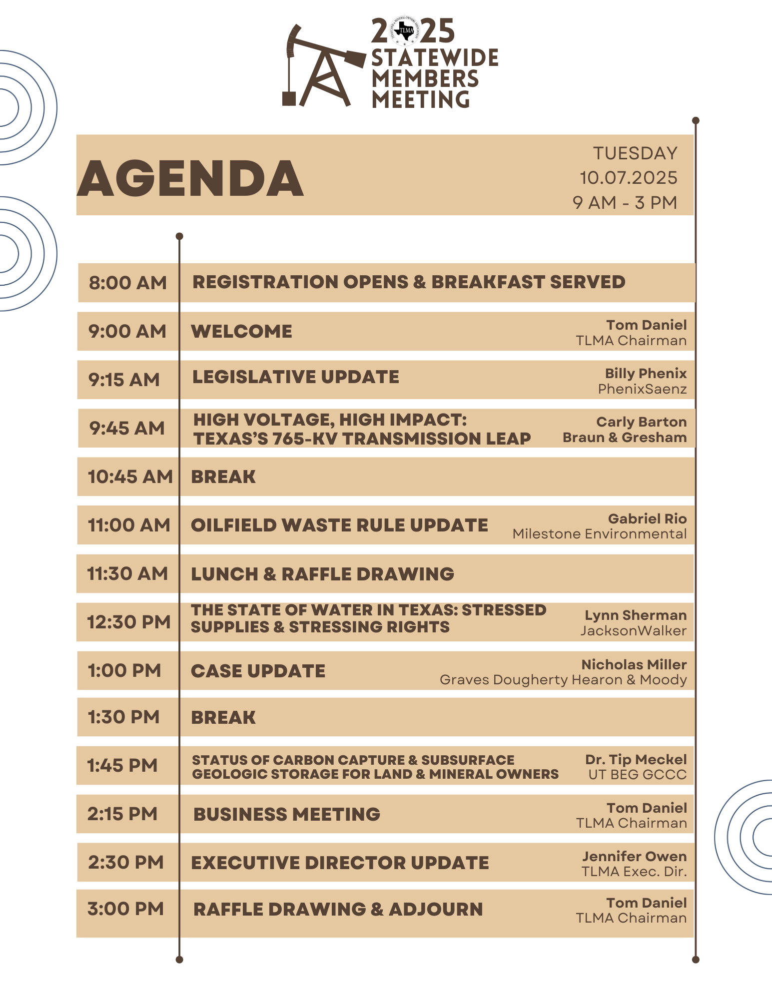 Book your group rate for TEXAS LAND & MINERAL ASSOC. Rooms must be reserved by Saturday, September 6, 2025. Cocktail Reception